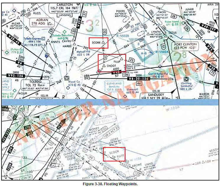 Floating waypoints, or reporting points, represent airspace