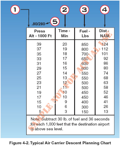 An example of a typical jet descent-planning chart is