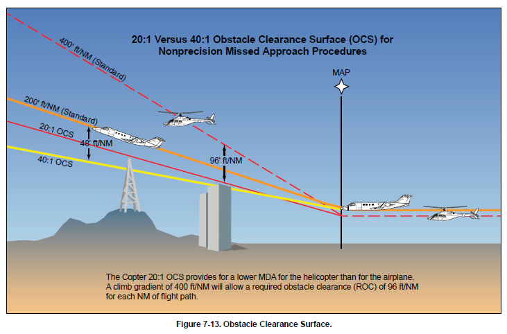 plane. This surface is twice as steep for the helicopter as the OCS used to evaluate the airplane missed