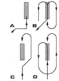 Patterns which can be used for circling approaches are shown in Figure 12-12. Pattern "A" can be flown when your final approach course intersects the runway centerline at less than a 90° angle and you sight the runway early enough to establish a base leg. If you sight the runway too late to fly pattern "A," you can circle as shown in "B." You can fly pattern "C" if it is desirable to land opposite the direction of the final approach and the runway is sighted in time for a turn to downwind leg. If the runway is sighted too late for a turn to downwind as shown in "C," you can fly pattern "D."