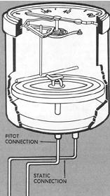 Although the vertical-speed indicator operates from the static pressure source, it is a differential pressure instrument. The differential pressure is established between the instantaneous static pressure in the diaphragm and the trapped static pressure within the case.