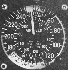The airspeed indicator is constructed to measure the difference between ram pressure from the pitot head and atmospheric pressure from the static source. The instrument (Fig. 4-13) is contained within a sealed case in which is mounted a diaphragm sensitive to pressure changes. The impact pressure line is connected directly to one side of the diaphragm, while the inside of the case is vented to the static source. As the aircraft accelerates or decelerates, expansion or contraction of one side of the diaphragm moves the indicator needle by means of gears and levers. The airspeed dial may show indicated airspeed, true airspeed, Mach (airspeed converted to a decimal fraction of the speed of sound), or a combination of these values calibrated in miles per hour or knots.