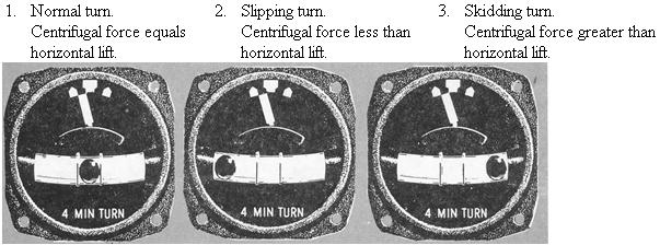 Figure 4-29. Coordinated, slipping, and skidding turn indications.