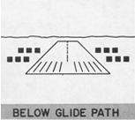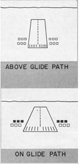 Deflection of the glide slope needle indicates the position of the aircraft with respect to the glide path (Fig. 7-34). When the aircraft is above the glide path, the needle is deflected downward. When the aircraft is below the glide path, the needle is deflected upward.