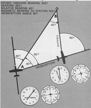 magnetic bearing. To intercept an inbound magnetic bearing, the following