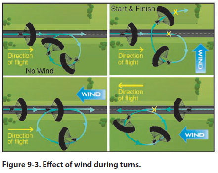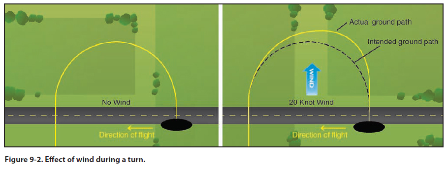 The effects of wind during turns can be demonstrated