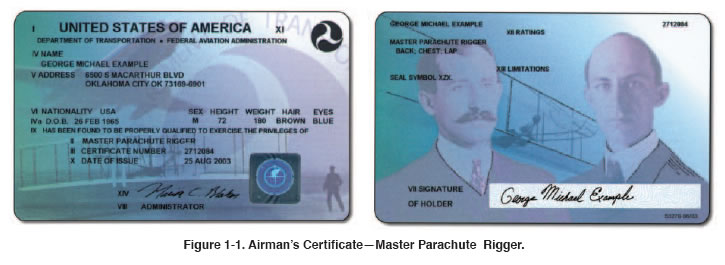 parachute rigger certificate [Figure 1-5 on page 1-5] and