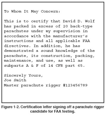 parachute rigger certificate. In addition, this chapter