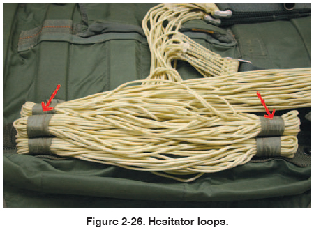 with the lines. The early parachutes utilized hesitator
