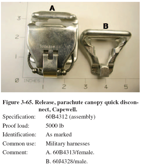 metal parts associated with parachutes, their systems, and