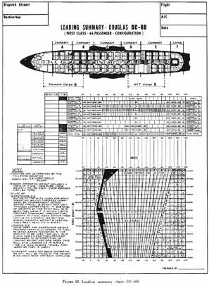 The load manifest (fig. 51) is completed by use of information from the manual as it pertains to the particular flight. Basic operating weight is either calculated or carried forward from previous records. Payload and fuel load indexes are obtained from load tables. When the weight and index items are totaled on the load manifest, such factors as zero fuel weight, taxi gross weight, and c.g. in % MAC are indicated. The load manifest makes provisions for last minute corrections such as would be necessary when cargo or additional passengers are added just before takeoff. Weights on the load manifest may be indicated in kilograms (kilo or kg.), or pounds, or both. Forms used for international operations will usually have weights indicated in kilograms.