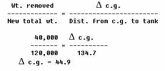 c.g. after dumping = 615.5 - 44.9 = 570.6 in.