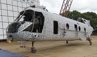 45-foot-long helicopter fuselage from a height