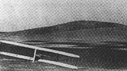 Wilbur Wright in same glider making a right turn. This glider is the first winged vehicle capable of full control in roll, pitch, and yaw axis. |