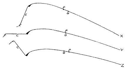 Fig. 1. -- P, center of pressure; G, center of gravity. |