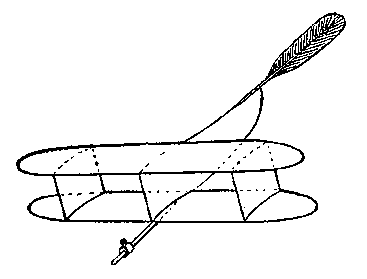 Fig. 5. The flights undertaken with such double sailing surfaces are distinguished by their great height, as is shown in Fig. 6, which gives a side-view of the apparatus. |