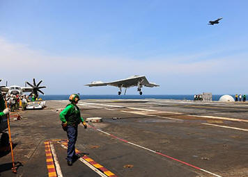 the ship using the carrier's catapult. The X-47B then
