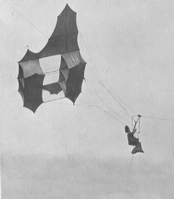 Fly, Using A 'Man-lifting War Kite'.