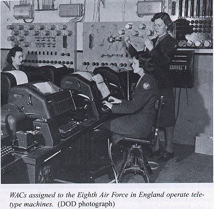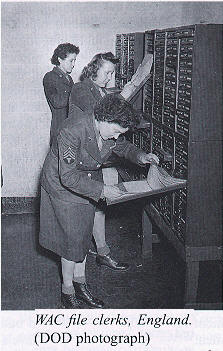 The WAC Overseas, In July 1943 the first battalion of WACs to reach the European Theater of Operations (ETO) arrived in London. These 557 enlisted women and 19 officers were assigned to duty with the Eighth Air Force. A second battalion of WACs earmarked for Eighth Air Force reached London between 20 September and 18 October. The majority of these women worked as telephone switchboard operators, clerks, typists, secretaries, and motor pool drivers. WAC officers served as executive secretaries, cryptographers, and photo interpreters. The demand for switchboard operators and typists remained so high that in 1944 two classes of approximately forty-five women each were recruited within the theater and received three weeks of basic training in England.