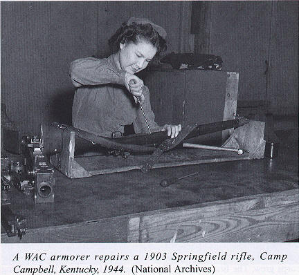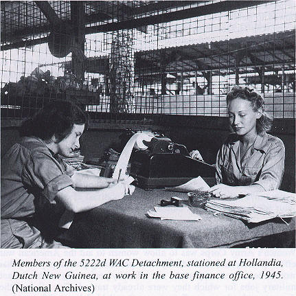 Update: World War II was the largest and most violent armed conflict in the history of mankind. However, the half century that now separates us from that conflict has exacted its toll on our collective knowledge. While World War II continues to absorb the interest of military scholars and historians, as well as its veterans, a generation of Americans has grown to maturity largely unaware of the political, social, and military implications of a war that, more than any other, united us as a people with a common purpose. Highly relevant today, World War II has much to teach us, not only about the profession of arms, but also about military preparedness, global strategy, and combined operations in the coalition war against fascism. During the next several years, the U.S. Army will participate in the nation's 50th anniversary commemoration of World War II. The commemoration will include the publication of various materials to help educate Americans about that war. The works produced will provide great opportunities to learn about and renew pride in an Army that fought so magnificently in what has been called "the mighty endeavor." World War II was waged on land, on sea, and in the air over several diverse theaters of operation for approximately six years. The following essay on the critical support role of the Women's Army Corps supplements a series of studies on the Army's campaigns of that war. This brochure was prepared in the U.S. Army Center of Military History by Judith A. Bellafaire. I hope this absorbing account of that period will enhance your appreciation of American achievements during World War II. The Women's Army Corps in World War II, Over 150,000 American women served in the Women's Army Corps (WAC) during World War 11. Members of the WAC were the first women other than nurses to serve within the ranks of the United States Army. Both the Army and the American public initially had difficulty accepting the concept of women in uniform. However, political and military leaders, faced with fighting a two-front war and supplying men and materiel for that war while continuing to send lend-lease material to the Allies, realized that women could supply the additional resources so desperately needed in the military and industrial sectors. Given the opportunity to make a major contribution to the national war effort, women seized it. By the end of the war their contributions would be widely heralded. The Women 's Army Auxiliary Corps, Early in 1941 Congresswoman Edith Nourse Rogers of Massachusetts met with General George C. Marshall, the Army's Chief of Staff, and informed him that she intended to introduce a bill to establish an Army women's corps, separate and distinct from the existing Army Nurse Corps. Rogers remembered the female civilians who had worked overseas with the Army under contract and as volunteers during World War I as communications specialists and dietitians. Because these women had served the Army without benefit of official status, they had to obtain their own food and quarters, and they received no legal protection or medical care. Upon their return home they were not entitled to the disability benefits or pensions available to U.S. military veterans. Rogers was determined that if women were to serve again with the Army in a wartime theater they would receive the same legal protection and benefits as their male counterparts. As public sentiment increasingly favored the creation of some form of a women's corps, Army leaders decided to work with Rogers to devise and sponsor an organization that would constitute the least threat to the Army's existing culture. Although Rogers believed the women's corps should be a part of the Army so that women would receive equal pay, pension, and disability benefits, the Army did not want to accept women directly into its ranks. The final bill represented a compromise between the two sides. The Women's Army Auxiliary Corps (WAAC) was established to work with the Army, "for the purpose of making available to the national defense the knowledge, skill, and special training of the women of the nation." The Army would provide up to 150,000 "auxiliaries" with food, uniforms, living quarters, pay, and medical care. Women officers would not be allowed to command men. The Director of the WAAC was assigned the rank of major. WAAC first, second, and third officers served as the equivalents of captains and lieutenants in the Regular Army, but received less pay than their male counterparts of similar rank. For example, although the duties of a WAAC first officer were comparable to those of a male captain, she received pay equivalent to that of a male first lieutenant. Enlisted women, referred to as "auxiliaries," were ranked in descending order from chief leader, a position comparable to master sergeant in the Regular Army, through junior leader, comparable to corporal, and down to auxiliary, comparable to private. Although the compromise WAAC bill did not prohibit auxiliaries from serving overseas, it failed to provide them with the overseas pay, government life insurance, veterans medical coverage, and death benefits granted Regular Army soldiers. If WAACs were captured, they had no protection under existing international agreements covering prisoners of war. Rogers' purpose in introducing the WAAC bill had been to obtain pay, benefits, and protection for women working with the military. While she achieved some of her goals, many compromises had been necessary to get the bill onto the floor. Rogers introduced her bill in Congress in May 1941, but it failed to receive serious consideration until after the Japanese attack on Pearl Harbor in December. General Marshall's active support and congressional testimony helped the Rogers bill through Congress. Marshall believed that the two-front war in which the United States was engaged would cause an eventual manpower shortage. The Army could ill afford to spend the time and money necessary to train me