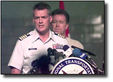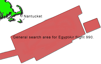 By mid afternoon, the media center for the Coast Guard search operation for the Egypt Air 990 search has been moved to Newport, R.I. Media are asked to go to Building 80 at the Naval Undersea Warfare Center in Newport. This facility will not be accessible by the media until 9 a.m. Monday, Nov 1. All further Coast Guard press conferences and briefings will occur at this location. The Coast Guard launched a massive and immediate search and rescue effort using every available resource. The search area is a 49 square nautical mile area with its center located 52-nautical miles south of Nantucket. A debris field was located approximately 60-miles south of Nantucket. The debris field consists of two partially inflated life rafts, seats, seat cushions, clothing, passports and other small pieces consistent with an aircraft crash. There have been no reports of survivors in the water. |
