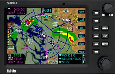 About FlightMax Avidyne currently produces three radar-capable FlightMax models, the FlightMax 850, 750, and 650, which interface to a growing list of new and existing radar systems.In addition, a non-radar equivalent FlightMax 450 provides all the mapping and display capability of the others. All FlightMax systems include the ability to display Stormscope lightning when interfaced with a BFG WX-500, a traffic display when interfaced with BFG Skywatch, Ryan TCAD 9900B, or an optional interface for BFG 791 or Honeywell CAS 66A TCAS I systems . Digitized IFR & VFR charts are also available on the FlightMax 750, 650, and 450.