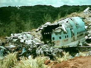 The flight was established on the localizer course and was descending from 2,600 feet when the airplane struck the top of Nimitz Hill (the location of the VOR) in a wings level, slight nose-high attitude. The airplane struck numerous trees and rising terrain before coming to rest about 2,100 feet from the initial impact point. The majority of the airplane was consumed by a post-crash fire. The investigation is currently in progress with working groups assembled for Operations, Meteorology, Aircraft Structures and Systems, Power plants, Survival Factors, Air Traffic Control, Aircraft Performance, CVR and FDR. National Transportation Safety Board Abstract On Korean Air Flight 801 Conclusions, Probable Cause, And Safety Recommendations.