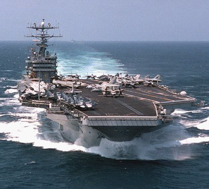 July 4, 1992 The USS GEORGE WASHINGTON (CVN 73) Commissioned. USS GEORGE WASHINGTON is a nuclear powered aircraft carrier built by the Newport News Shipbuilding Company of Newport News, Virginia. The keel was laid on August 25, 1986 and the ship was commissioned on July 4, 1992. Two nuclear reactors are used for propulsion (the ship is capable of steaming more than one million miles before refueling) turning 4 five bladed screws that weigh 66,220 pounds each. The GW can travel at speeds over thirty knots and is 1,094 feet long, 257 feet wide and has a height equal to a twenty-four story building (244 feet). The ship can accommodate approximately 80 aircraft and has a flight deck 4.5 acres in size, using four elevators that are 3,880 square feet each to move planes between the flight deck and the hangar bay. With a combat load, the GW displaces almost 97,000 tons and carries over 6,000 crew members. It can distill 400,000 gallons of water and serves 18,000 meals per day. There are over 2,500 compartments on board requiring 2,520 tons of air conditioning capacity (enough to cool over 2,000 homes). The ship uses two anchors that weigh 30 tons each, with each link of the anchor chain weighing 360 pounds. |