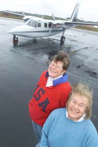 | Media Credit: Cape Cod Times Gwen Bloomingdale, right, and Barbara Gard in front of their ill-fated plane. | ||