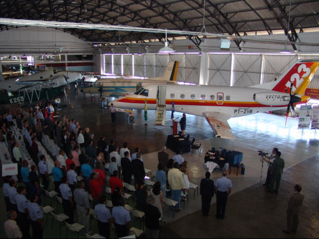 August 20, 2009: Sao Jose dos Campos, Brazil– Embraer delivered the second prototype of the CBA 123 airplane, to the Aerospace Museum (Museu Aeroespacial – MUSAL). The ceremony was held at the museum, at Campo dos Afonsos, in the city of Rio de Janeiro, Brazil. Embraer restored the aircraft as part of the activities in commemoration of the Company’s 40th anniversary, and it will be on display in the main exhibition hall, next to the first prototype of the Bandeirante, which was the first airplane manufactured by Embraer. “It is a great honor for Embraer to see the CBA 123 exhibited in Brazil’s largest aerospace museum,” said Pedro Ferraz, Director of the Embraer Education and Research Institute. “We have a very special place in our hearts for this airplane. Although it was not produced in series, for commercial reasons, the CBA 123 represented a significant technological advance for Brazil’s aeronautics industry. It will undoubtedly be well cared for at the MUSAL.” |