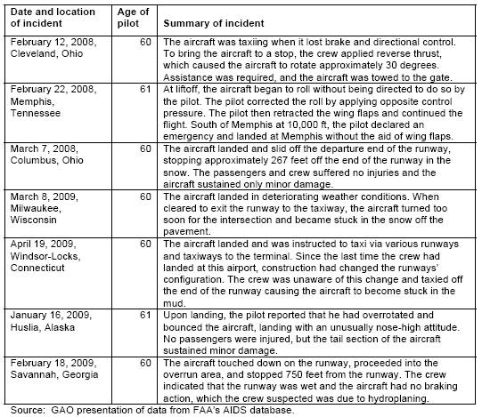 60 years or older that occurred during GAO review period. Table 1: Aviation Incidents Involving Pilots 60 Years or Older, December 2007 through September 2009