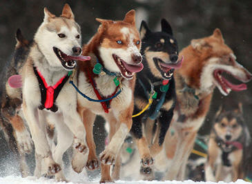 team race across Alaska. Mushers and a team of 12-16