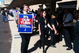 American Airlines Flight Attendants voted to approve a strike authorization with a record 96.8 percent voting yes and a record turnout of 90 percent. That same day at the AMR share holders meeting, American executives claimed a $600 million per year labor cost disadvantage as compared to its network competitors. Flight Attendants challenged the Company analysis as flawed, pointing out there was no documentation to support their claim filed with the Securities Exchange Commission (SEC). In a separate SEC filing the Company revealed that the top five AMR executives were awarded stock shares with an estimated value today of approximately $12.8 million. Flight Attendants are looking to achieve an agreement that significantly improves their pay, benefits and work rules after bailing out the airline in 2003 with concessions that now total more than $2.3 billion. The union asked the NMB for release from negotiations in March and plans to push for the 30-day cooling period. “Flight Attendants have been down this path before and our strike vote shows our strength and unity. We have exhausted our options at the table and now it’s time to move the process forward into the 30-day cooling period,” Glading concluded. |
