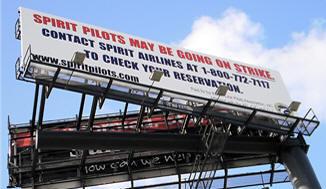 This week, the Air Line Pilots Association, Int’l placed billboards in Spirit Airline’s three major airport hubs alerting them to the serious labor dispute at Spirit and requesting that passengers confirm their reservations with the airline before flying. “Any strike has the potential to disrupt plans,” said Capt. Sean Creed, leader of the Spirit unit of ALPA. |