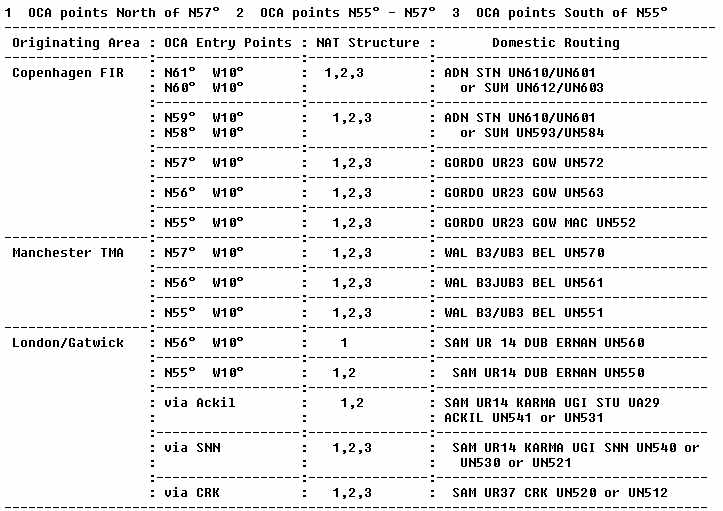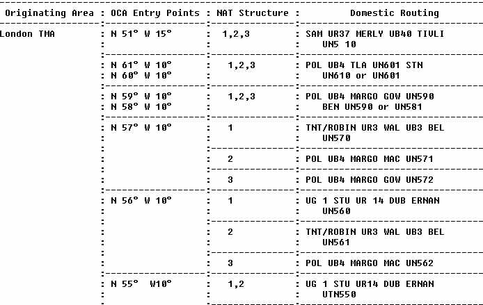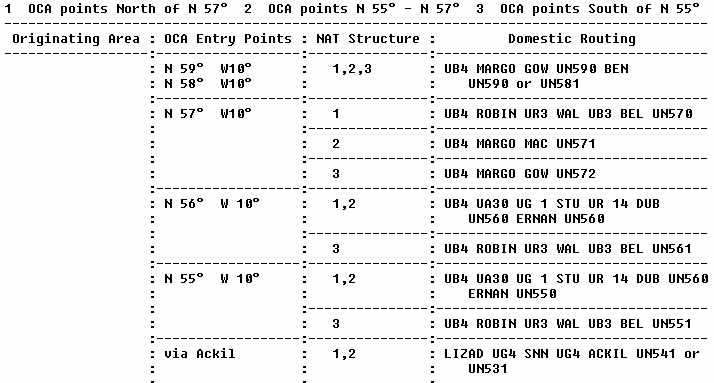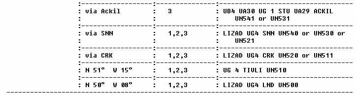 SAMPLE OF PREFERRED ROUTES FOR NAT TRAFFIC - WESTBOUND
