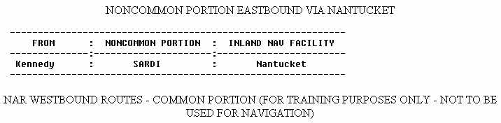 NAR EASTBOUND ROUTES - COMMON PORTION (FOR TRAINING PURPOSES ONLY -