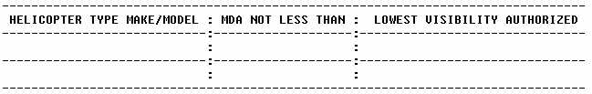 and landing minimums for the helicopters listed in the following table,
