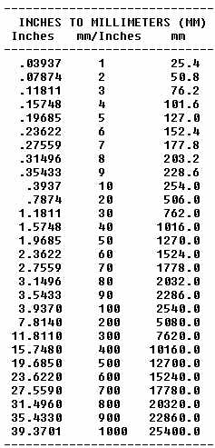 NOTE: CONVERSIONS ARE ROUNDED OFF TO NEAREST WHOLE NUMBER EXCEPT FOR THE FIRST ROW