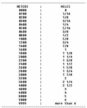 FIGURE 1-8. VISIBILITY CONVERSION, TAF CODE TO MILES